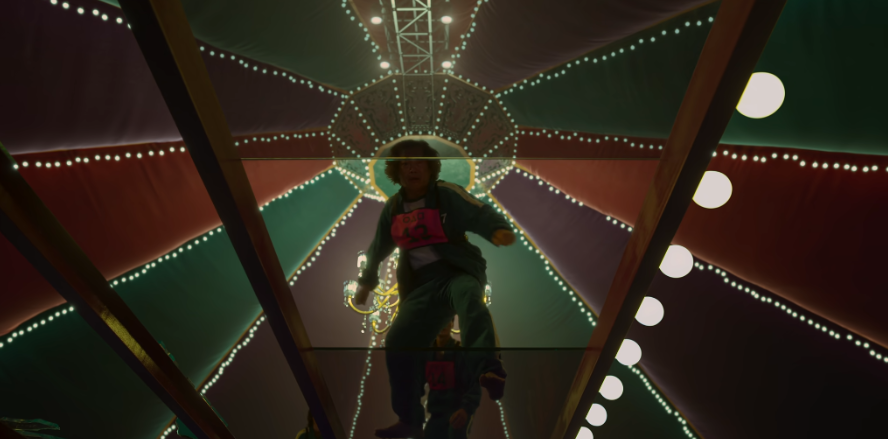 높은 곳에 설치된 유리다리, 발판중 일부는 강화유리 나머지는 얇은 유리로 되어있어 아래로 추락하게되는 게임, 가면을 쓴 VIP들이 멀리서 관람을 하고있죠. 참가자 16명 중 기훈(이정재), 상우(박해수), 새벽(정호연) 생존, 13명 탈락