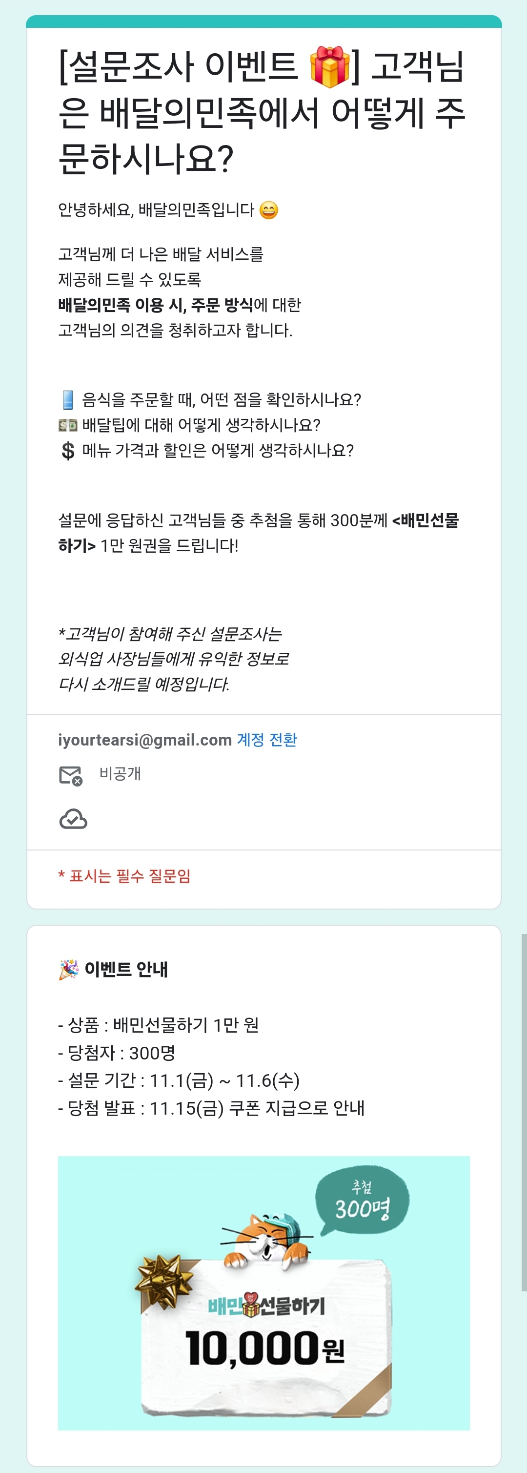[설문조사 이벤트 🎁] 고객님은 배달의민족에서 어떻게 주문하시나요?