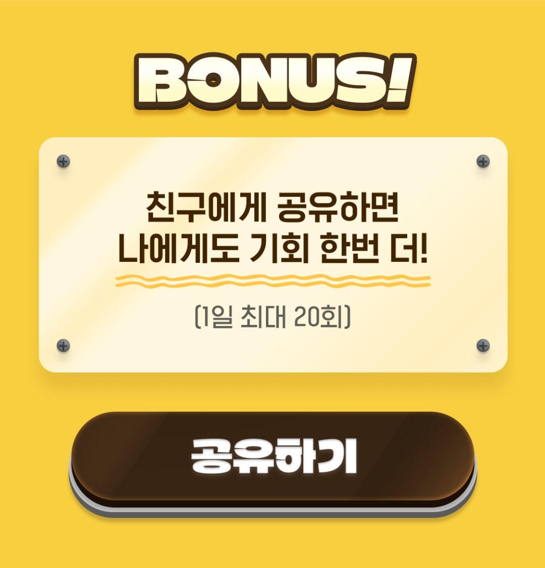 1일 1회가능하고, 친구에게 공유하면 추가로 20회까지 가능