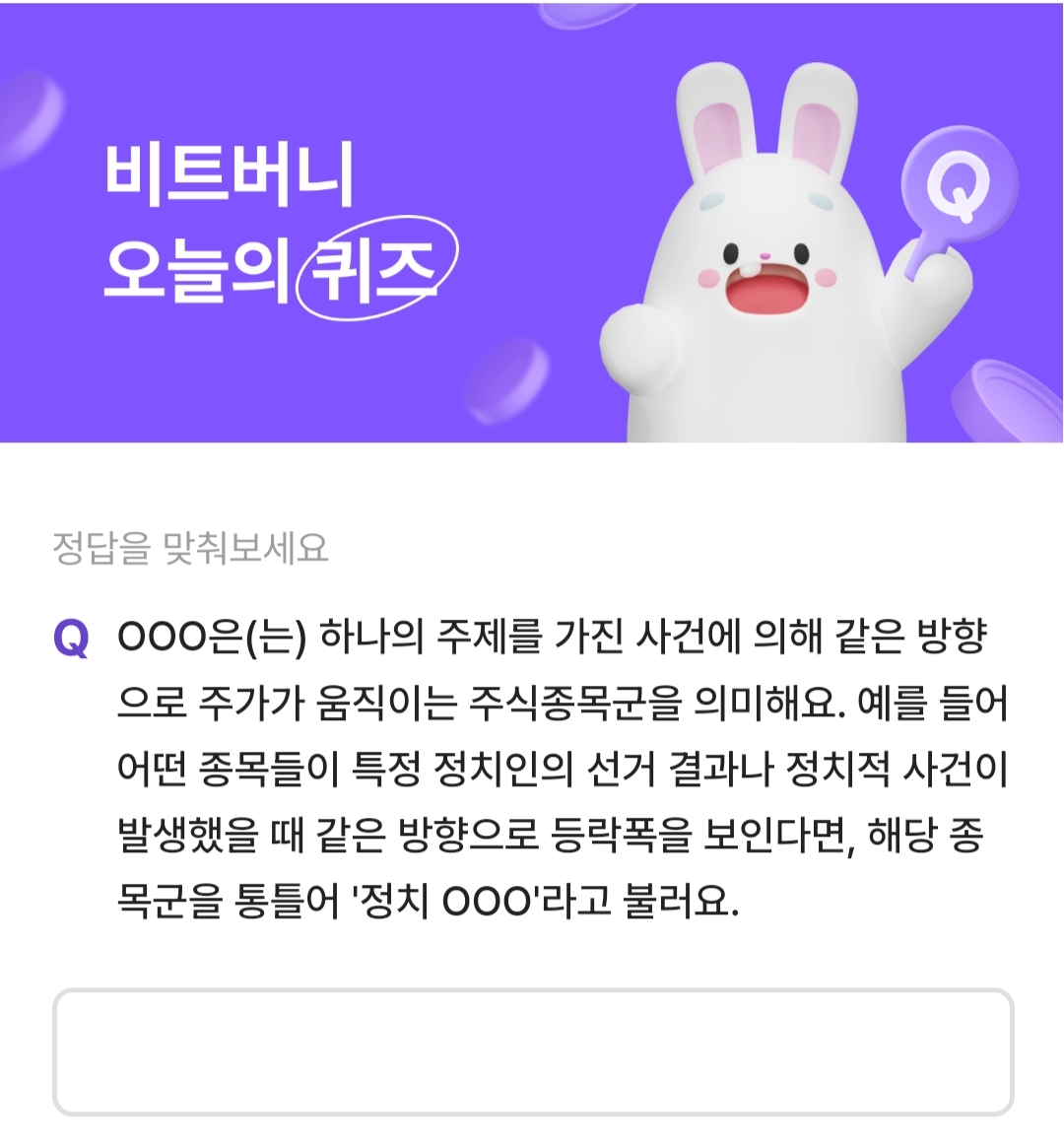 | [비트버니] 8월 11일 비트버니 오늘의퀴즈 정답/ 메모리워드 정답 (0) | 2024.08.11 |