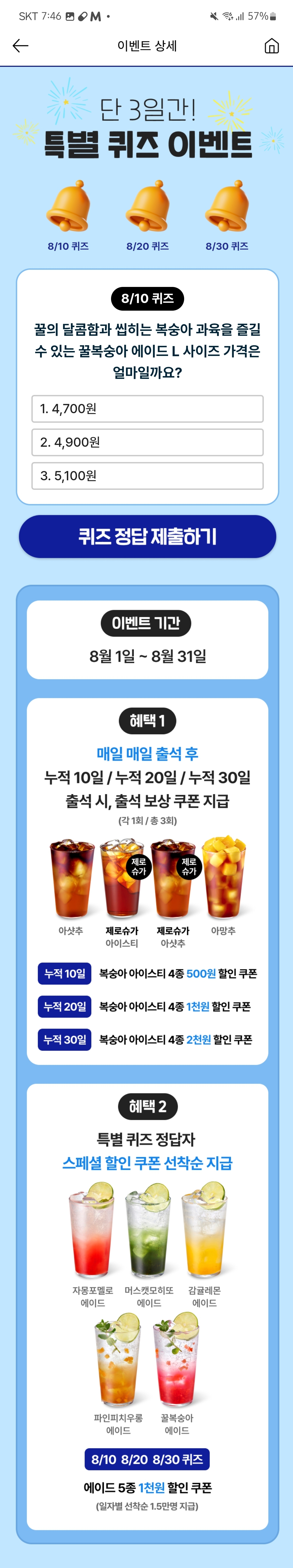 [이디야멤버스]8월 10일 특별 퀴즈 이벤트