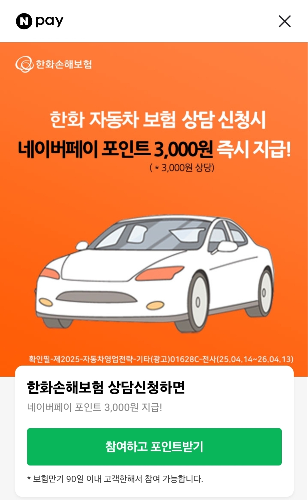 네이버페이 APP (한화손해보험 만기알림) - 네이버페이 3,000원
