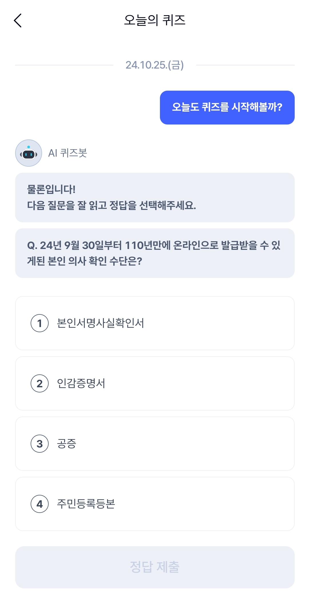 [케이뱅크] AI 퀴즈 챌린지 10월 25일 오늘의 퀴즈 정답