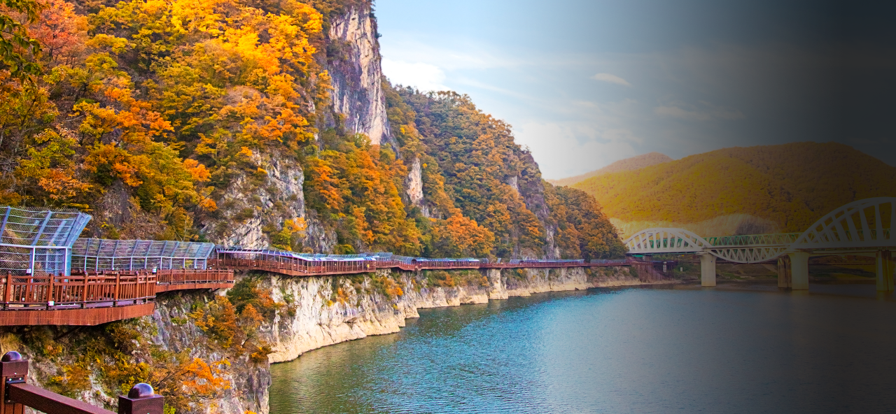 단양강 잔도는 단양강을 따라 조성된 아름다운 산책로로 환상적인 경치를 만끽하며 여유로운 시간을 보낼 수 있는 곳입니다. 잔도는 자연과의 조화를 이루며 걷는 동안 강물 소리와 바람을 느낄 수 있습니다. 특히 가을철 단풍 시즌에는 더욱 아름다운 풍광을 자랑합니다. 다양한 포토존이 마련되어 있어 사진 찍기에도 좋은 장소로 유명합니다..